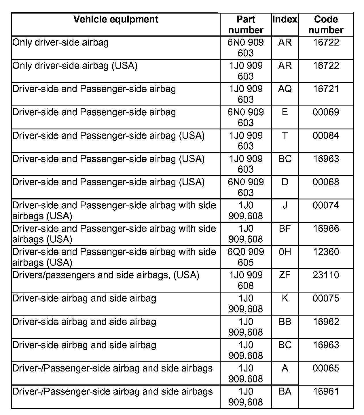 1J0 909 608 A AIRBAG VW 3 S V03