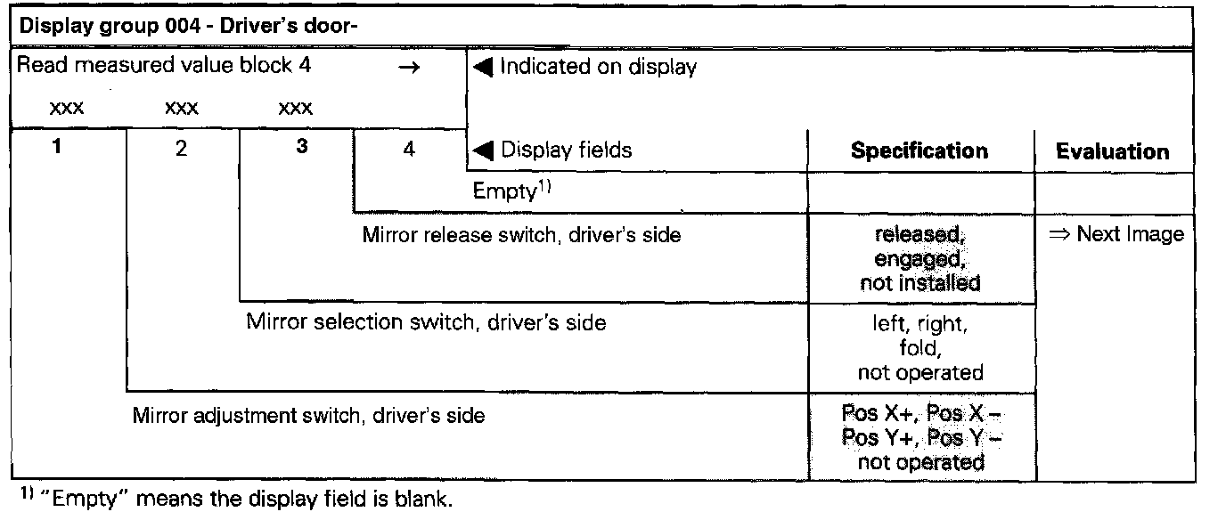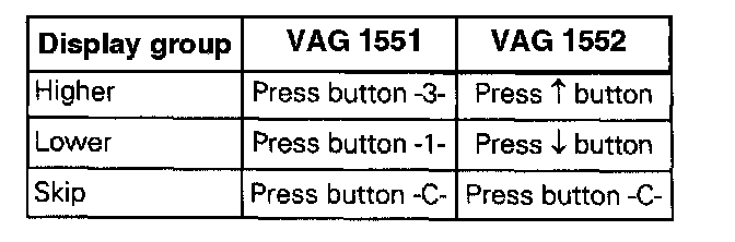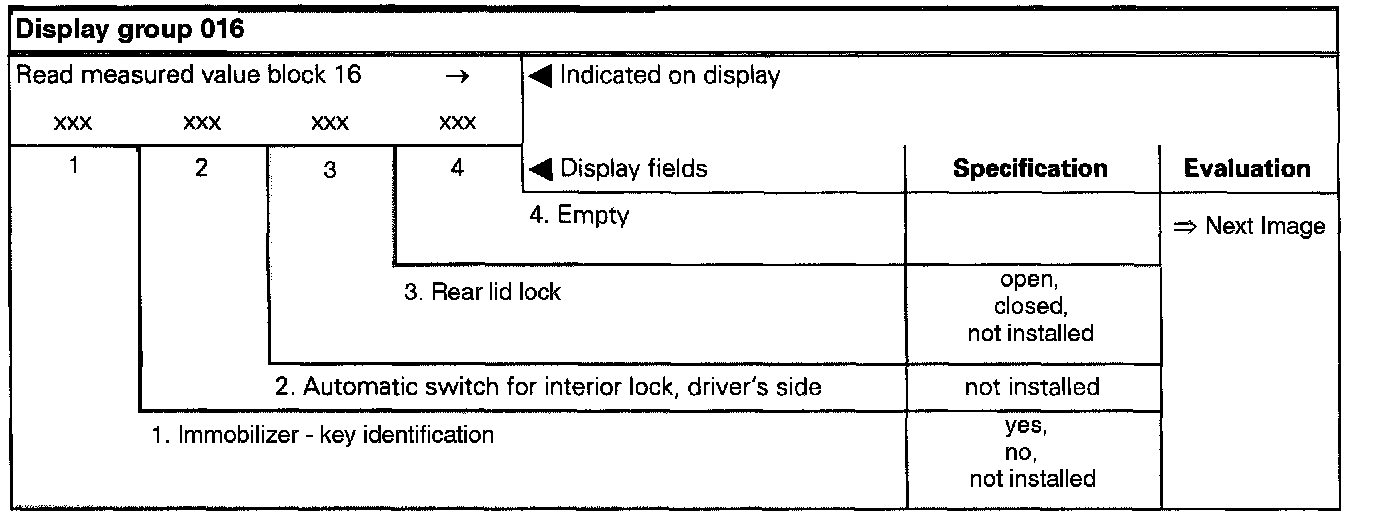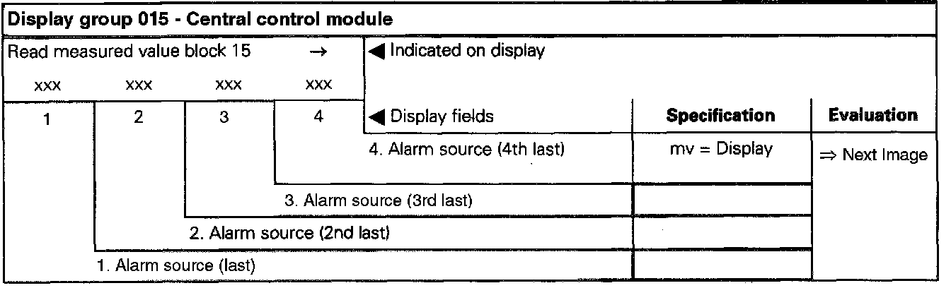 The measured value block is divided into 16 display group numbers. The assignment of the individual display fields can be taken from the display group overview below.