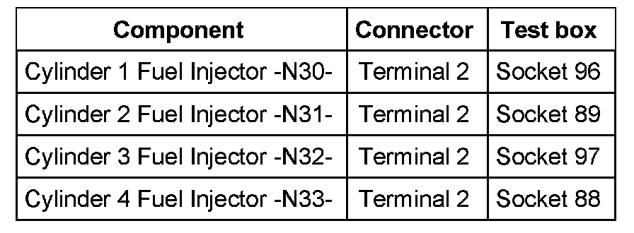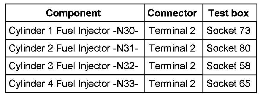 - The respective fuses of fuel injectors (N30 to N33) must be OK.