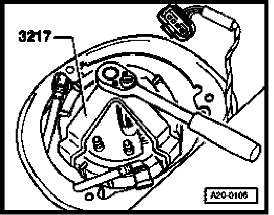 - Disconnect supply line -3- (with white marking) and catch escaping fuel using a rag.