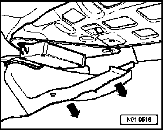 - Loosen upper left luggage compartment trim and pull down -arrows-.