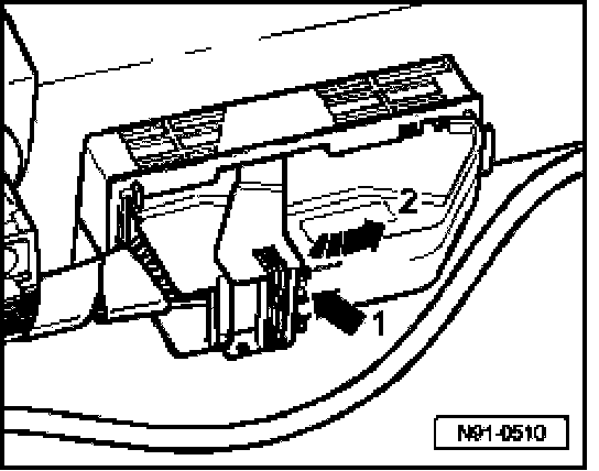 - Depress clip -arrow1- and slide locking lever in direction of -arrow2-.