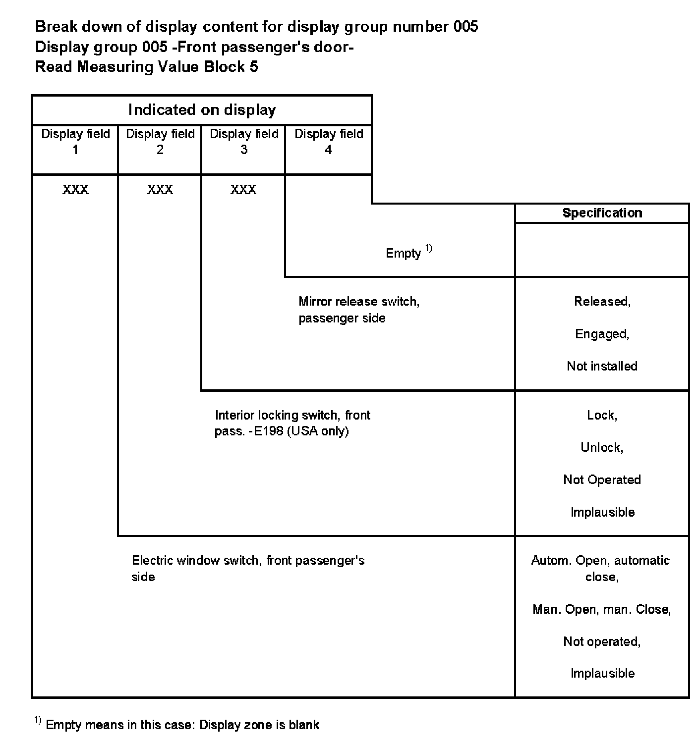 Break down of display content for display group number 005