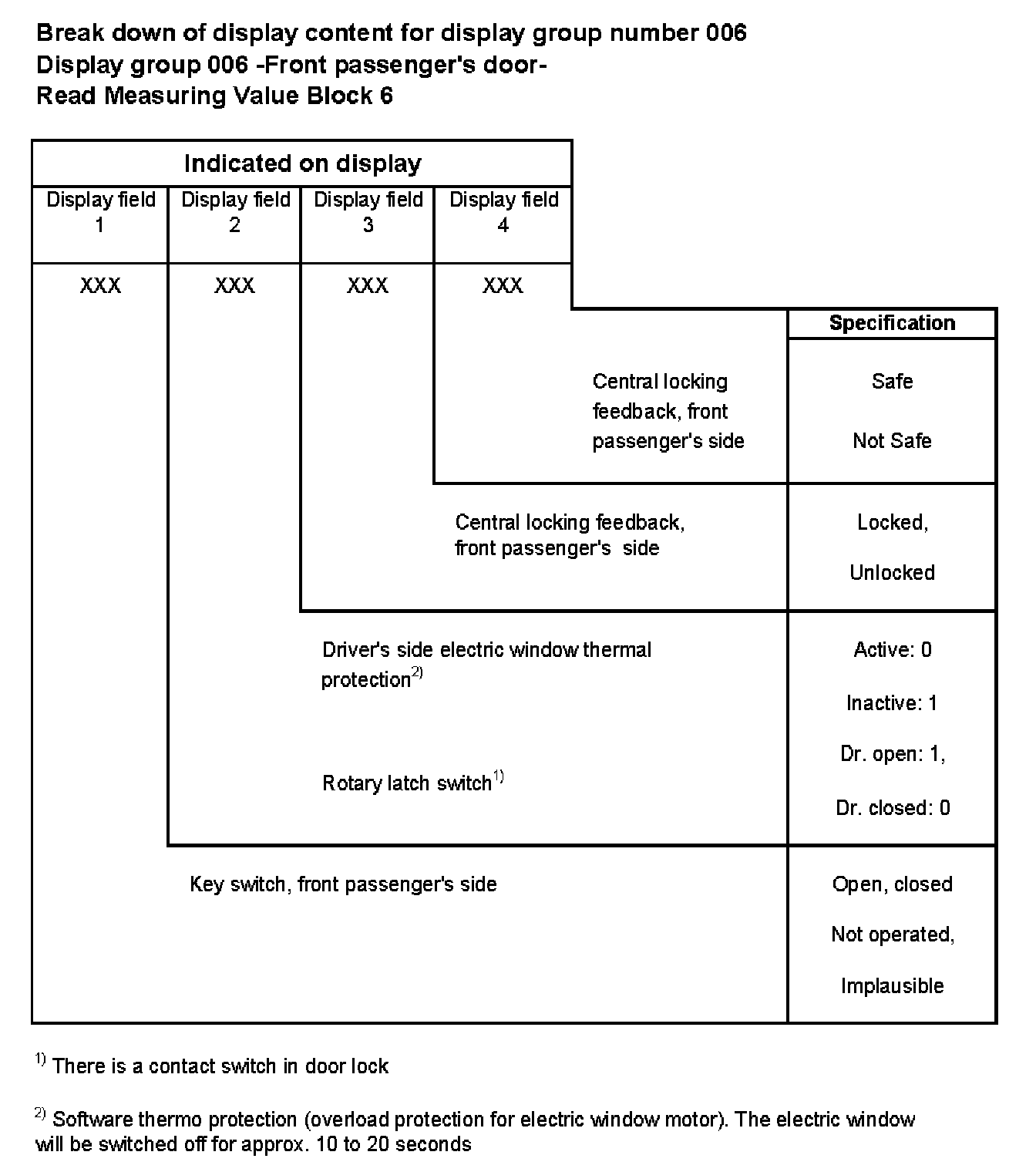 Break down of display content for display group number 006