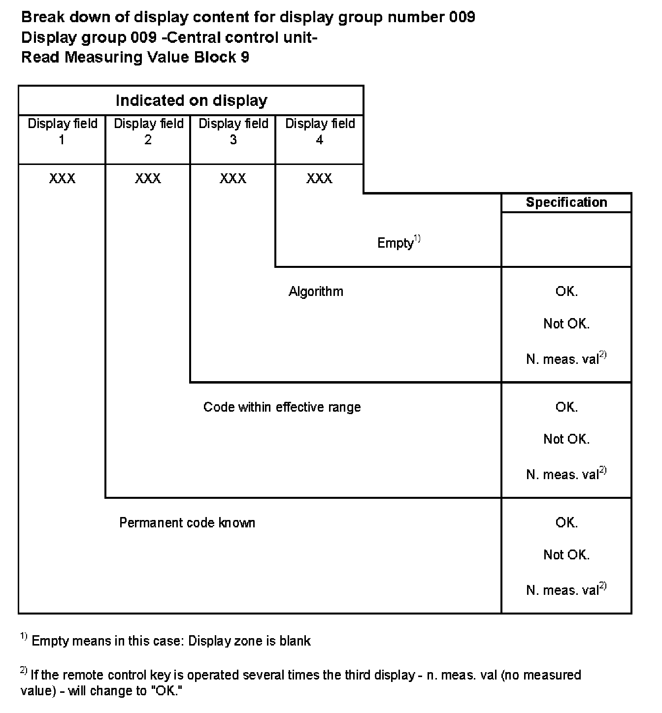 Break down of display content for display group number 009