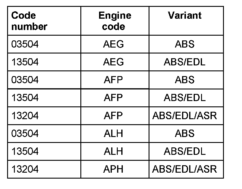 - The ABS control module (w/EDL) -J104- must be recoded if the vehicle relevant coding is not displayed or the control module has been replaced.