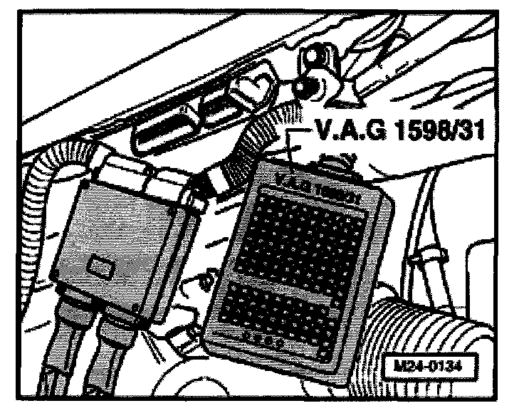 - Connect test box VAG 1598/31 to control module wiring harness. The engine control module remains disconnected.
