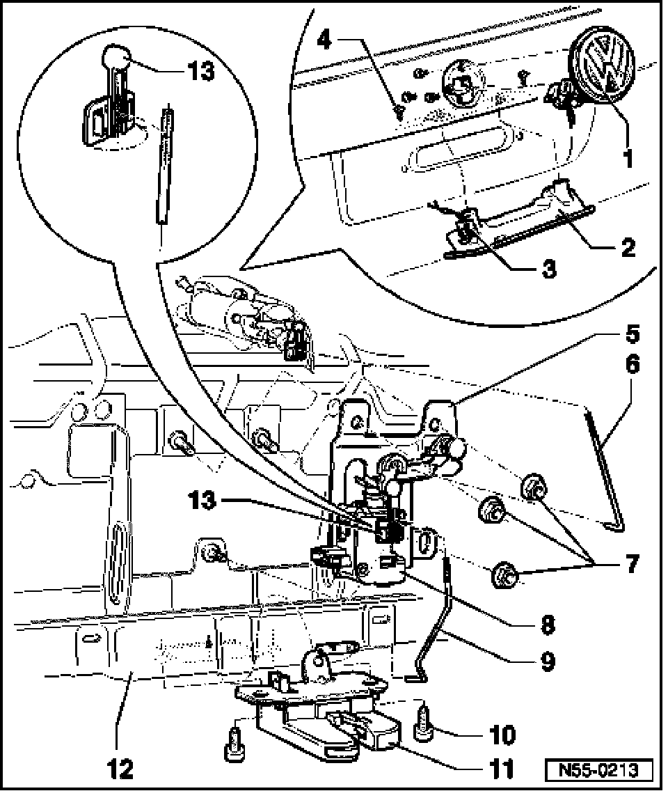 - Press actuator lever with operating rod Item -13- against stop and engage operating rod free of tension