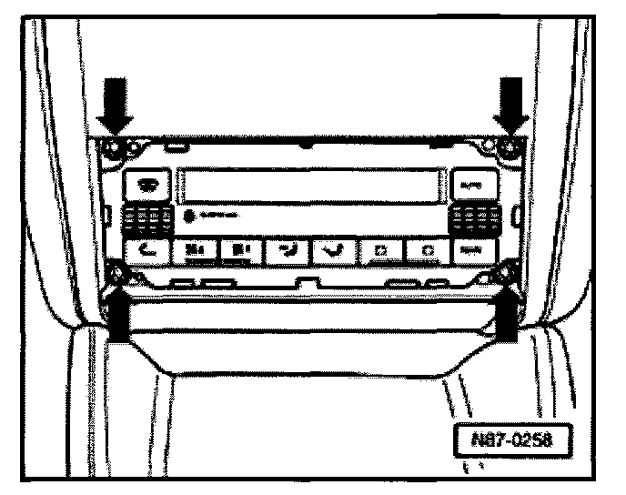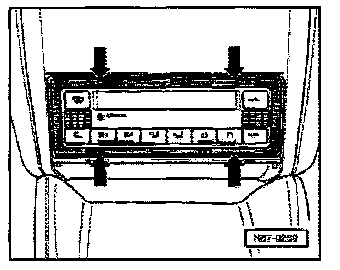 - Using a screwdriver with a protected tip carefully unclip control head trim at locations indicated by -arrows-.