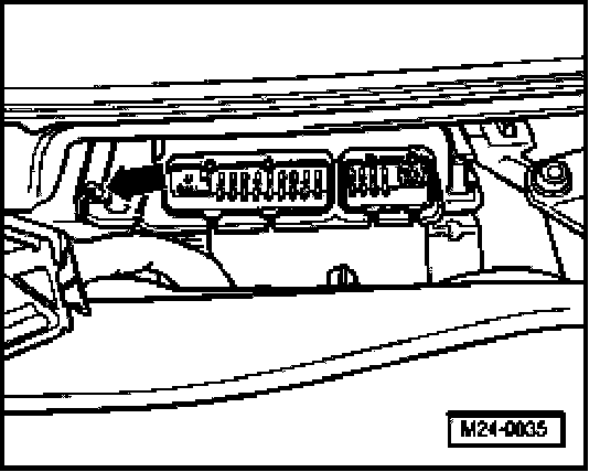 - Press mounting bracket (arrow) towards left and pull control module out.