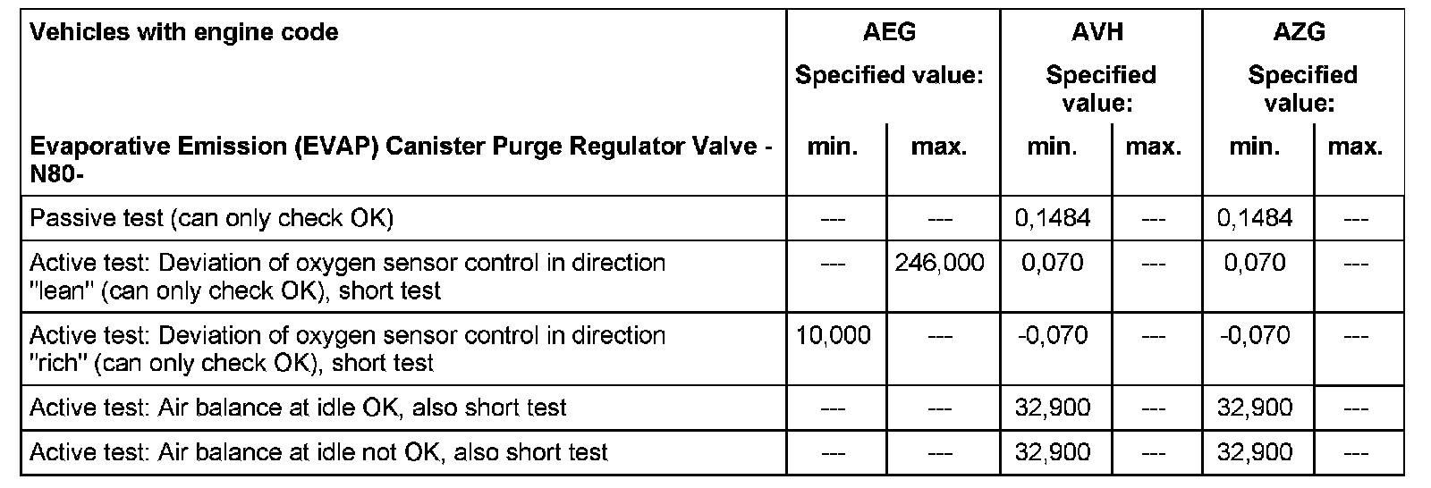 - Check Evaporative Emission (EVAP) Canister Purge Regulator Valve -N80-. Evaporative Emission (EVAP) Canister Purge Regulator Valve, Checking