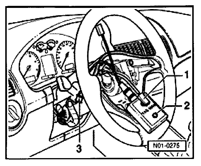- Connect igniter connector to inert igniter -1- and separate wiring harness to coil connector with slip ring. Connect connector -3- from VAS 5056/3 with airbag wiring harness.