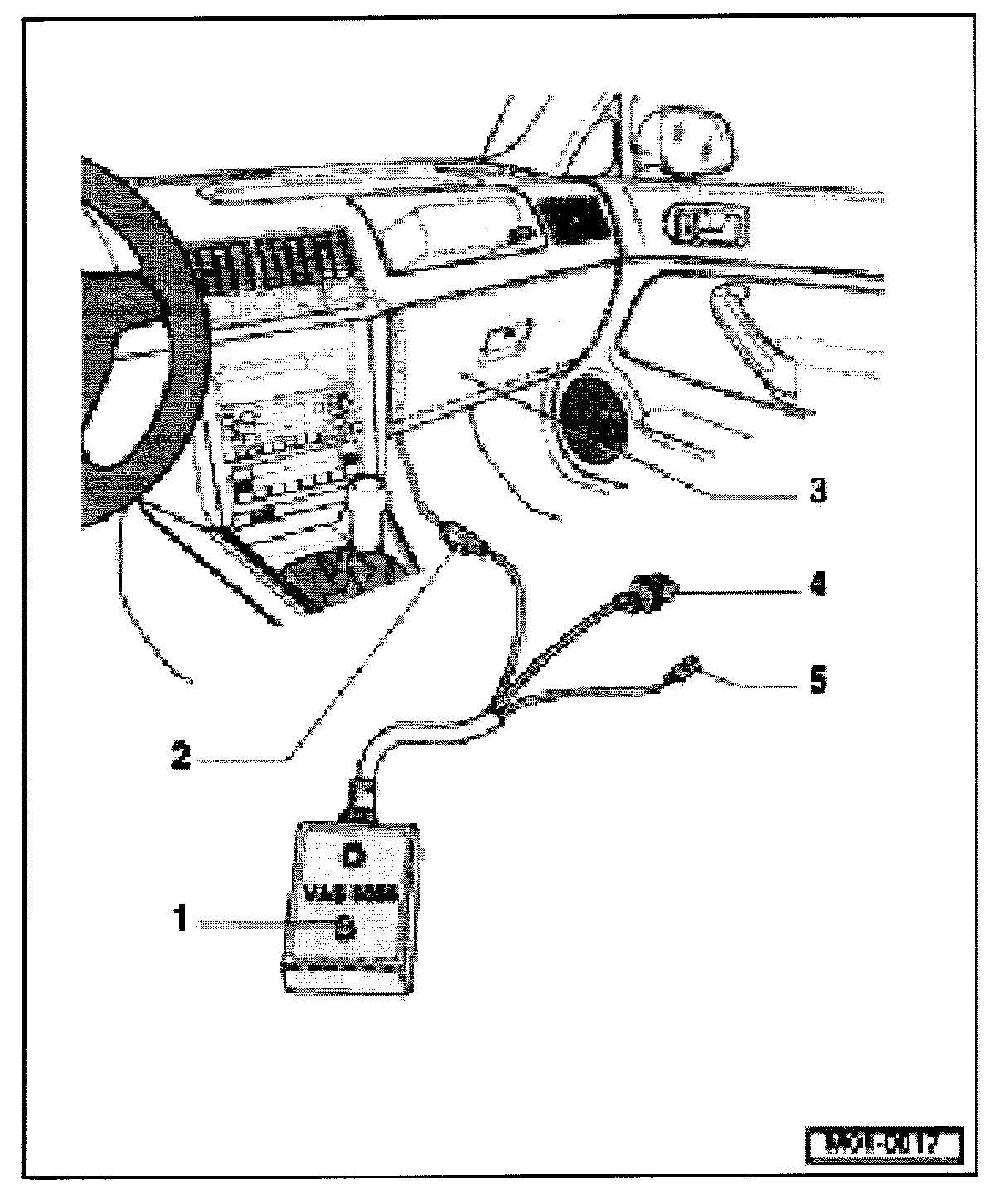 - Disconnect wiring harness to airbag unit and connect yellow 2-pin connector of VAS 5056/3 with the wiring harness/passenger-side airbag.