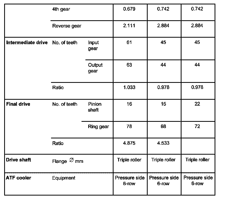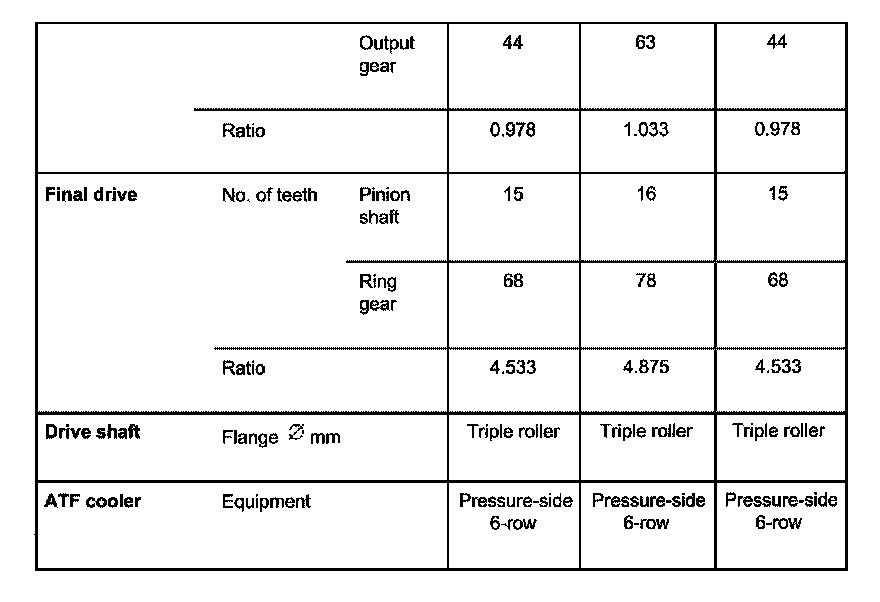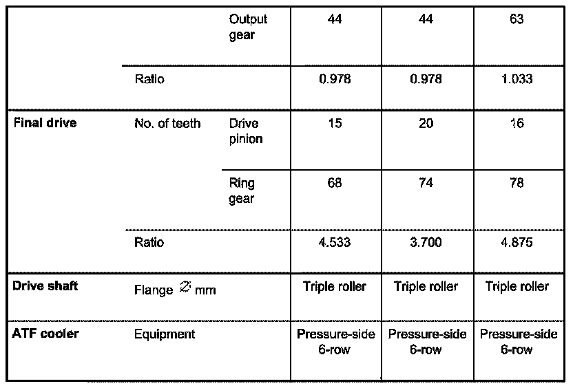 Code letters, transmission allocation, ratios, equipment (EPJ, FCZ, FDB Transmissions)
