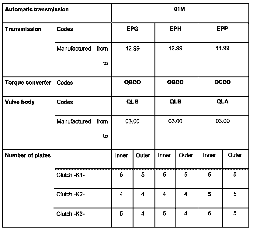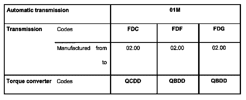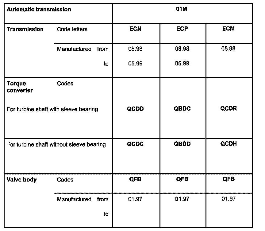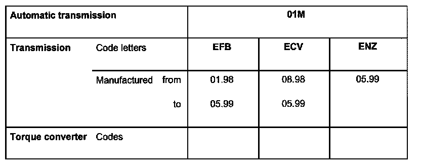 The 4-speed automatic transmission 01M is installed in the Golf and Jetta from 1999 in combination with a 4 or 6-cylinder engine.