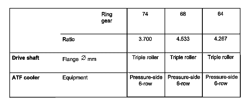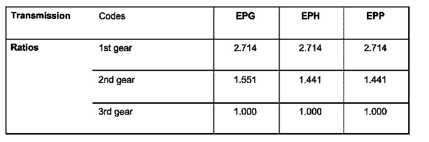 Code letters, transmission allocation, ratios, equipment (ELZ, EPB, EPC Transmissions)
