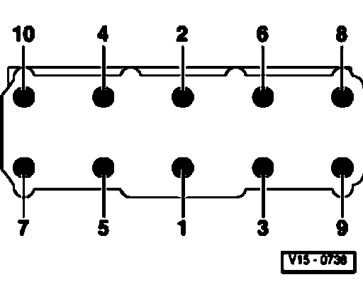 Tighten bearing caps 2 and 4 alternately and diagonally to 20 Nm.