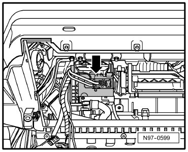 Under the instrument panel behind the glove compartment -Arrow-