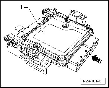 - Slide the ECM - 1 - in the - the direction of the arrow - into the mounting frame until it engages.