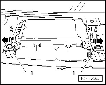 - Slide the connector catches - 1 - on the ECM outward and remove both connectors.