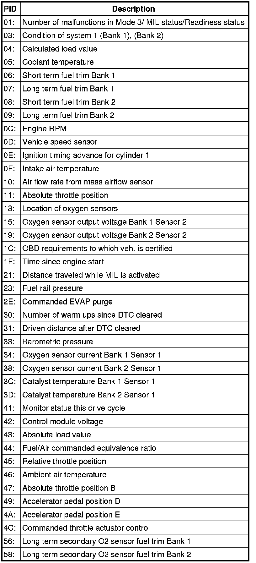 Diagnostic Mode 01 makes it possible to access current emissions-related measured values and diagnostic data. The original measured values (no replacement values), input and output data and system status information are displayed using Diagnostic Mode 1.