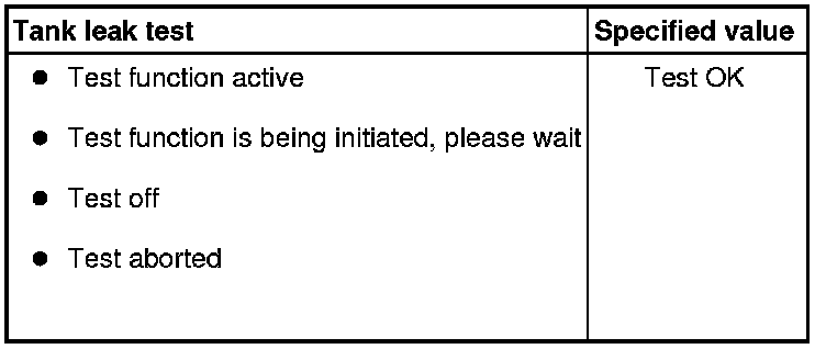 - Check the specified value of the tank leak test at idle.