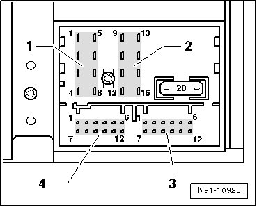 11 CD changer, DATA IN (data exchange for the CD changer control from the CD changer to the radio navigation system)