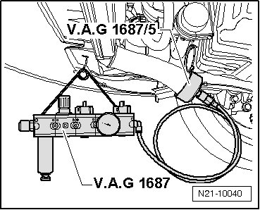 • Before removing the adapter, discharge pressure in testing circuit by pulling off the coupling from adapter (V.A.G 1687/5).