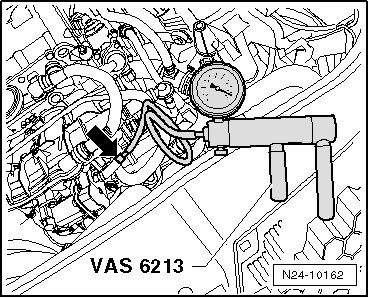 - Operate the hand vacuum pump (VAS 6213) several times. The vacuum must build up pressure.