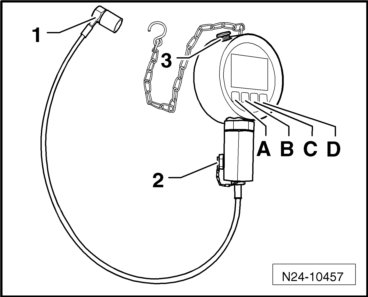 - Press the button - A - once briefly to turn on the pressure sensor tester (VAS 6394/1).