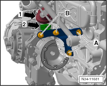 - Tighten the bolts - B - to 40 Nm.