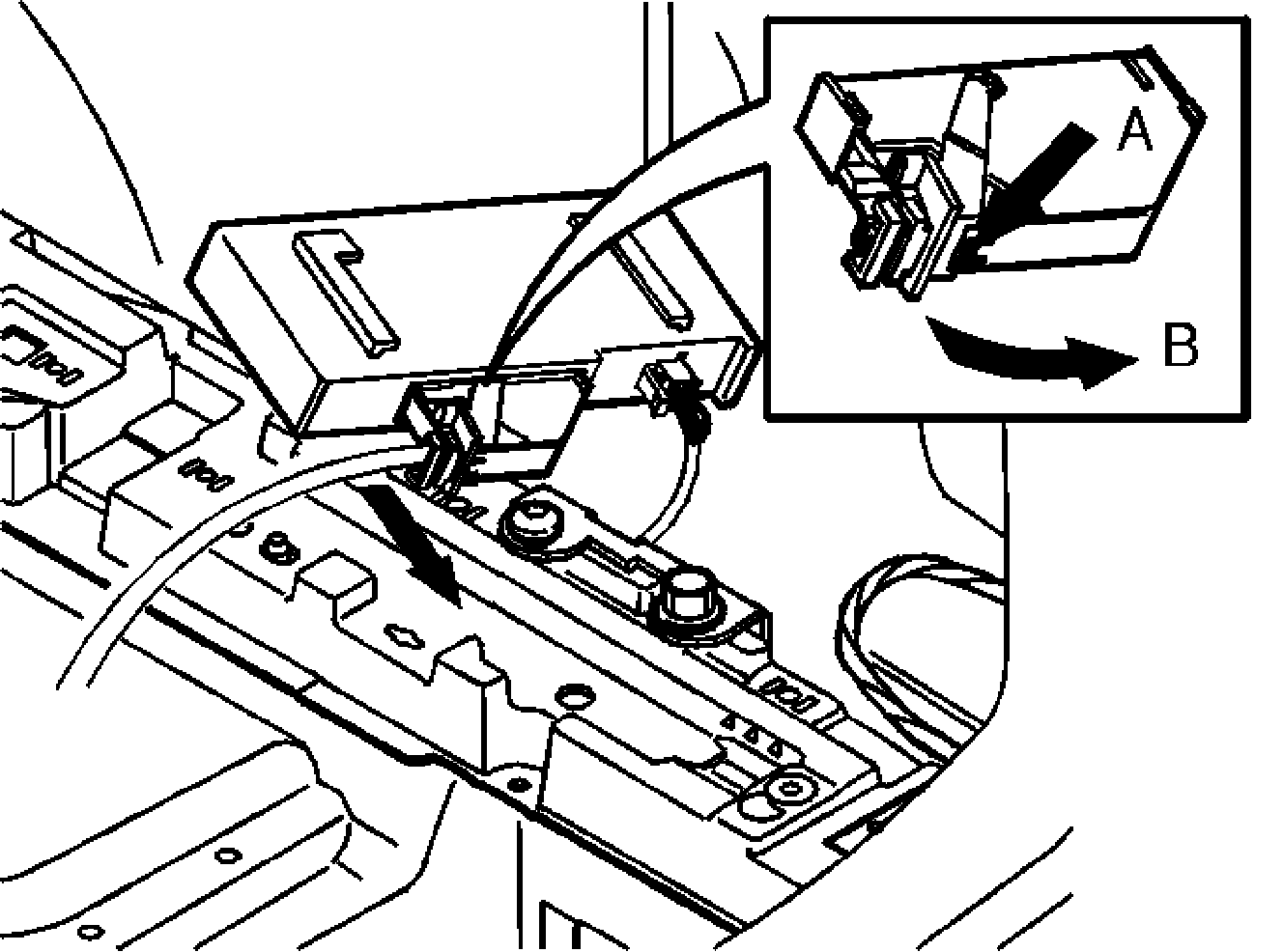 Press the catch (A) and pull the lock handle backwards. Pull the connector out of the control module.