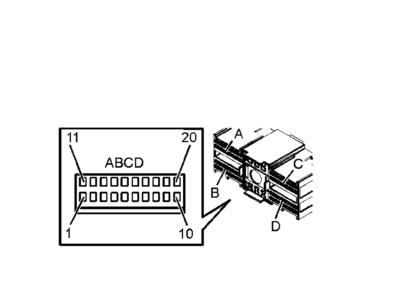 NOTE: Remove fuses 11C/32, 11C/25 and 11C/21 before disconnecting the control module connector.