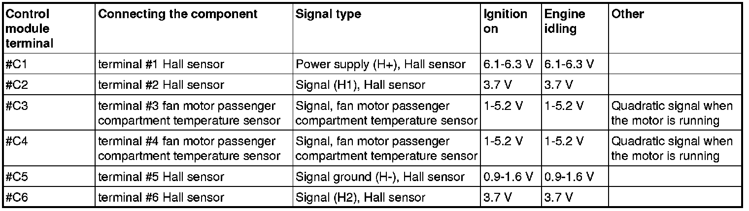Note! From and including w50 2001, the fan is connected directly to connector C with no wiring in-between.