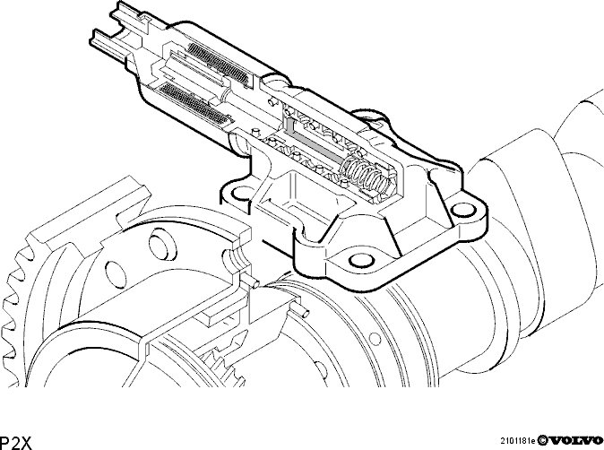 The damper motor is controlled by a power stage integrated in the engine control module (ECM) using a pulse width modulation (PWM) signal. The torsion from the opening and return springs in the throttle unit is also used. If there is a fault in the engine control module (ECM) so that the throttle unit cannot be operated or supplied with power, the springs in the throttle unit will turn the throttle disc to the limp home position (return position). This return position gives a throttle angle large enough to allow the car to be driven to a workshop, although with considerably reduced driveablity.