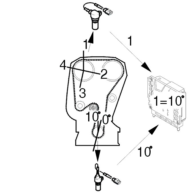 The control module detects the reference positions for the camshaft flanks using the signal from the engine speed (RPM) sensor.