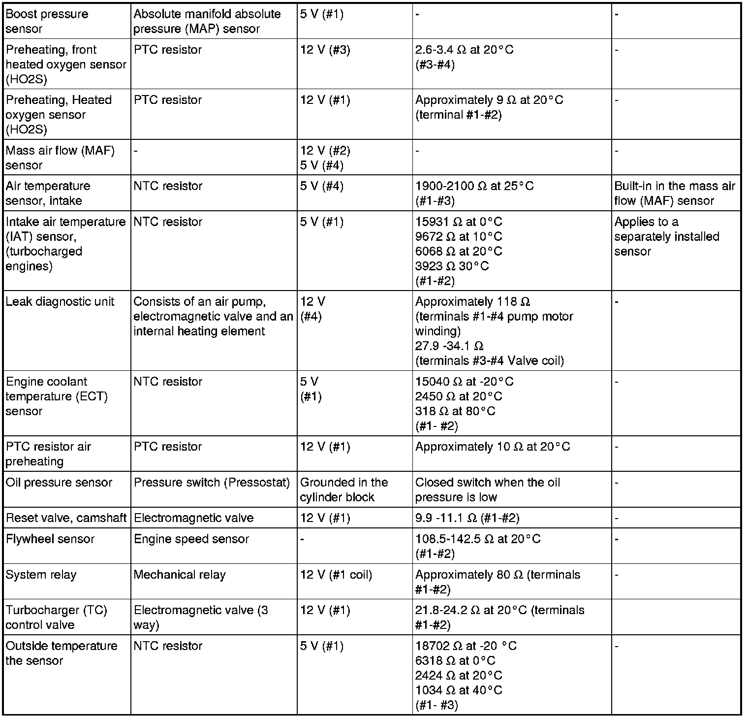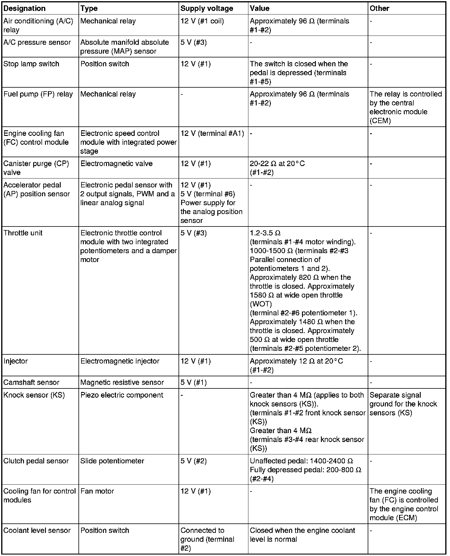 The component specification gives the value of the component when the connector is disconnected. Where no value is given, it is not possible to measure a relevant value at the component.