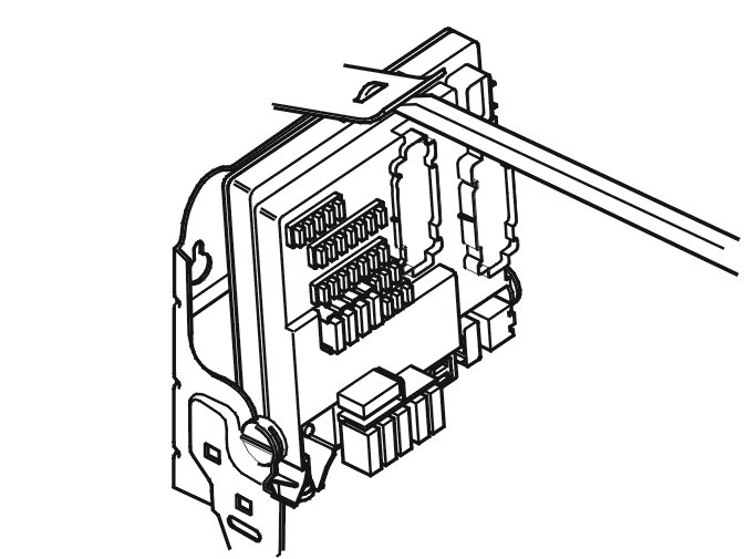 Caution! The pins are fragile. Check that the connector enters straight down into the control module.