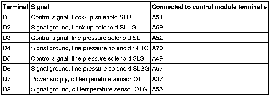 Connector D, transmission