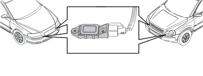 The front impact sensors transmit continuous signals to the control module to indicate that they are working. In the event of a fault in a frontal impact sensor, a fault signal is transmitted to the control module which then stores a diagnostic trouble code (DTC). A diagnostic trouble code (DTC) is also stored if the communication between the control module and one of the frontal impact sensors does not function. Each frontal impact sensor has a software ID. The ID is used to check that the correct frontal impact sensor is installed.