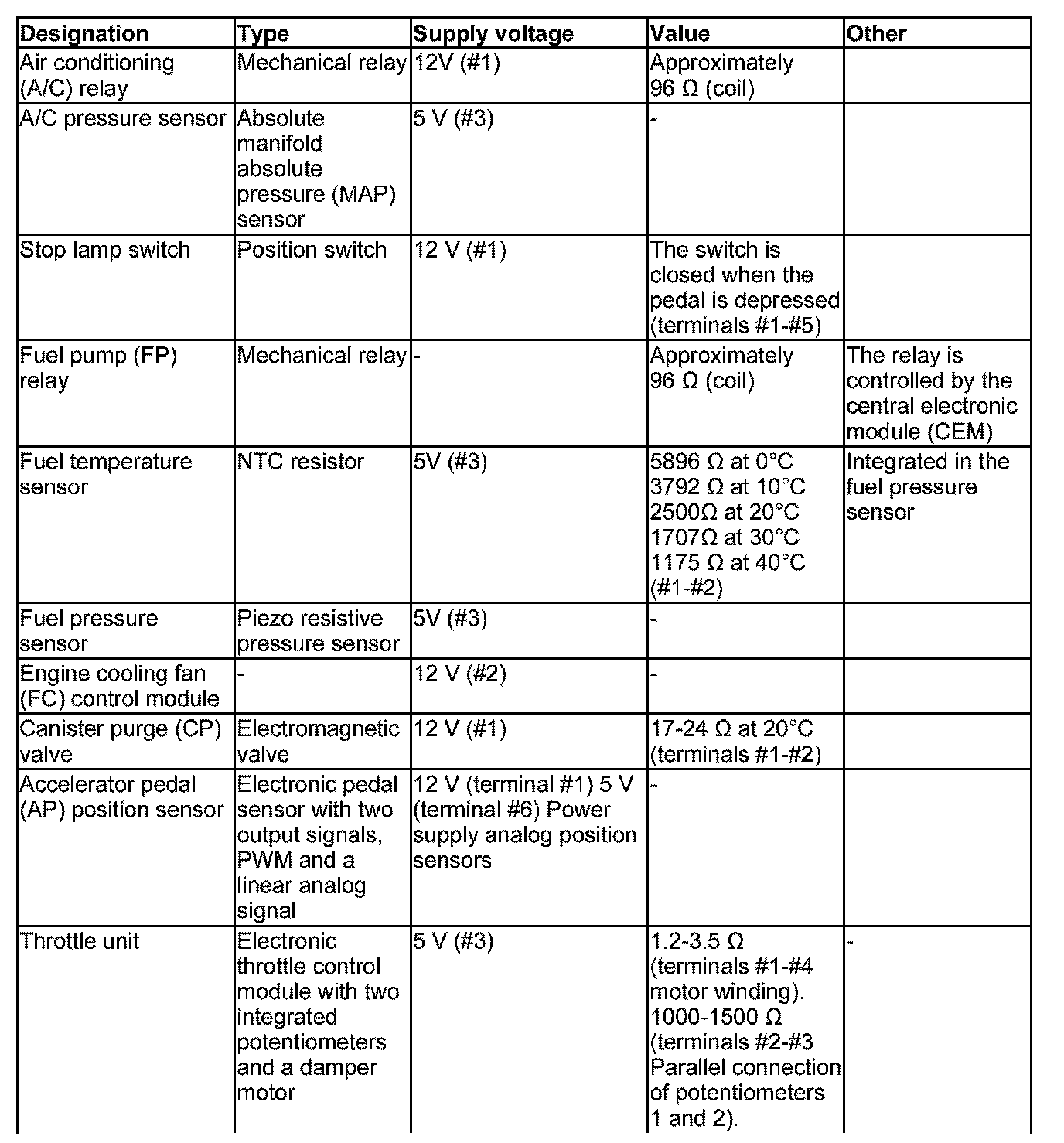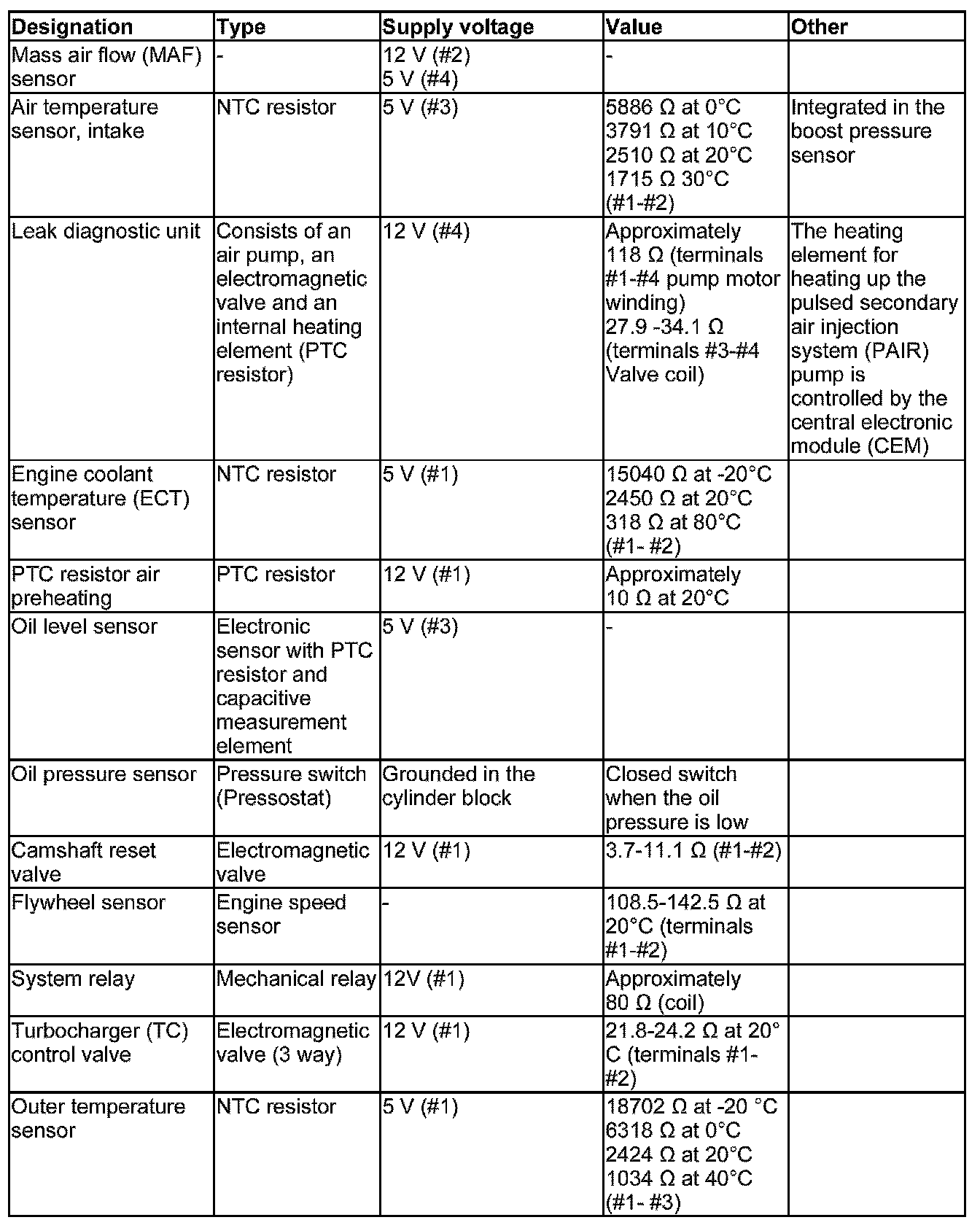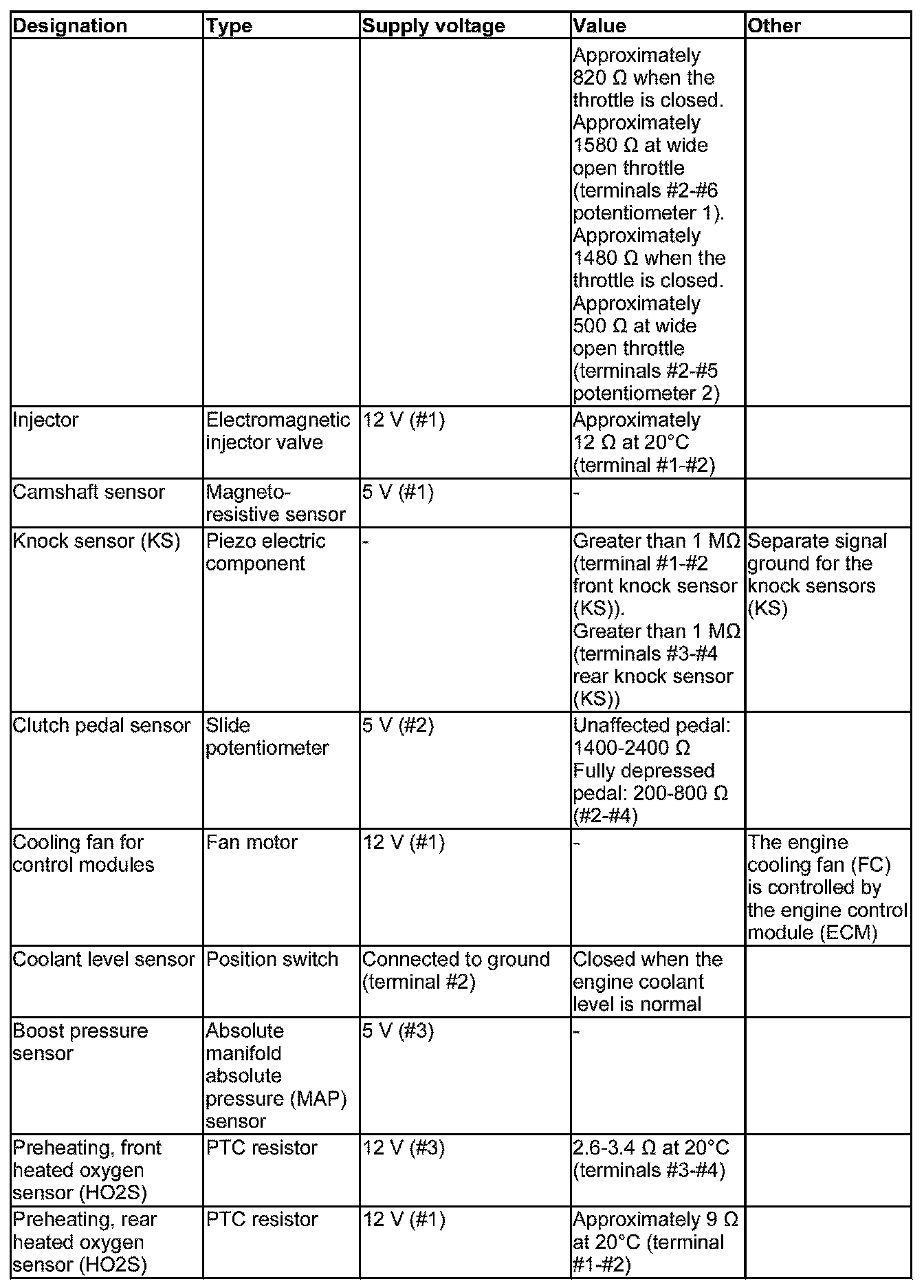 The component specification gives the value of the component when the connector is disconnected. Where no value is given, it is not possible to measure a relevant value at the component.