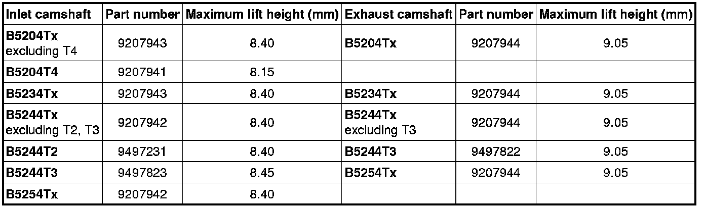 15.96 mm at 0.02 mm intervals up to 16.16 mm. The dimensions are listed on the inside of each valve lifter.
