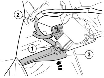 Note! Pull the newly routed cable harness between the cable duct and steering column.