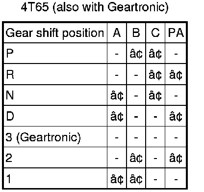 The value indicates the selected gear (according to the gear solenoids). The value indicated depends on the transmission type.