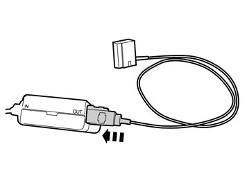 - Connect the previously disconnected cable terminal on the cable from the media player's receptacle housing to IN on the TMC unit.