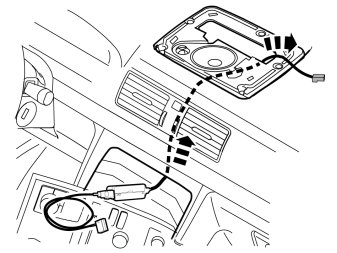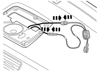 - Insert the long cable with the green connector from the TMC unit up between the air vent and through the hole in the loudspeaker grill, the same way as the previously routed cable.