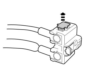 - Carefully pry up the two small catches at the rear edge of the receptacle housing and carefully pull out the cable terminal.