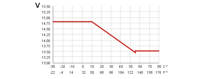 The central electronic module (CEM) uses the prevailing outside temperature to calculate the voltage at which the battery should be charged.