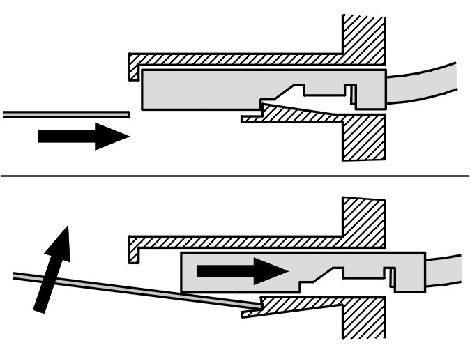 Pull the secondary lock out to the side. Use an electrician's screwdriver, as illustrated.