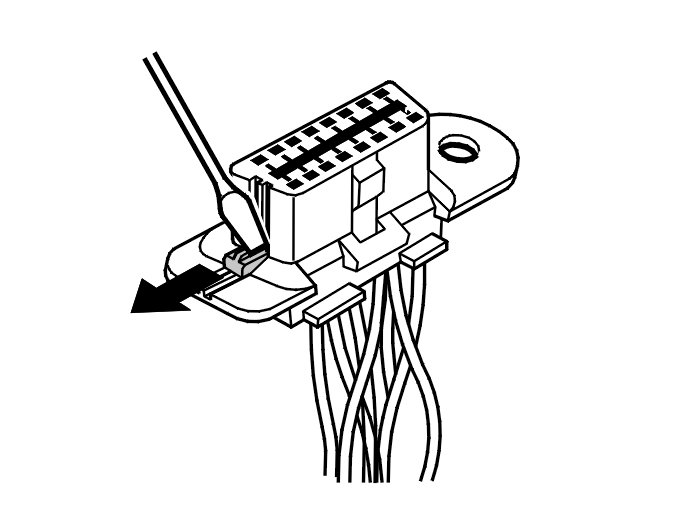 Use tool 951 2636 Terminal removal tool 951 2636 Terminal Removal Tool to remove the cable terminal lock, as illustrated.